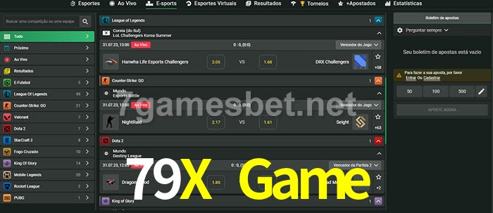 O 79X Game oferece uma grande seleção de opções de apostas em e-sports com probabilidades competitivas